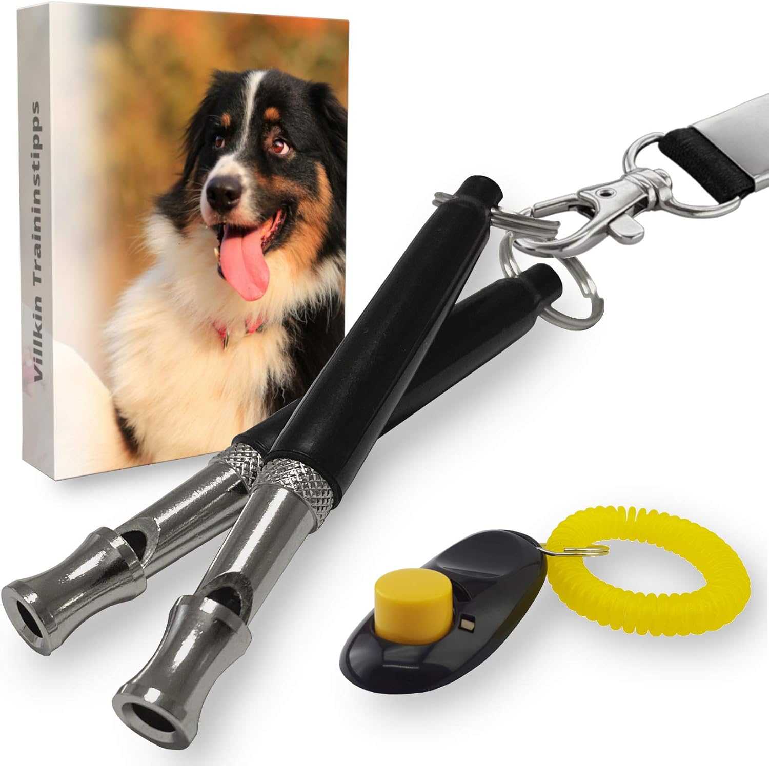 Villkin 2x Hundepfeife Bonus Hunde Clicker Schlusselband Und E Book Kontrolle Erlangen Und Bellen Stoppen Schwarz Silber Mit Einstellbarer Frequenz Amazon De Haustier