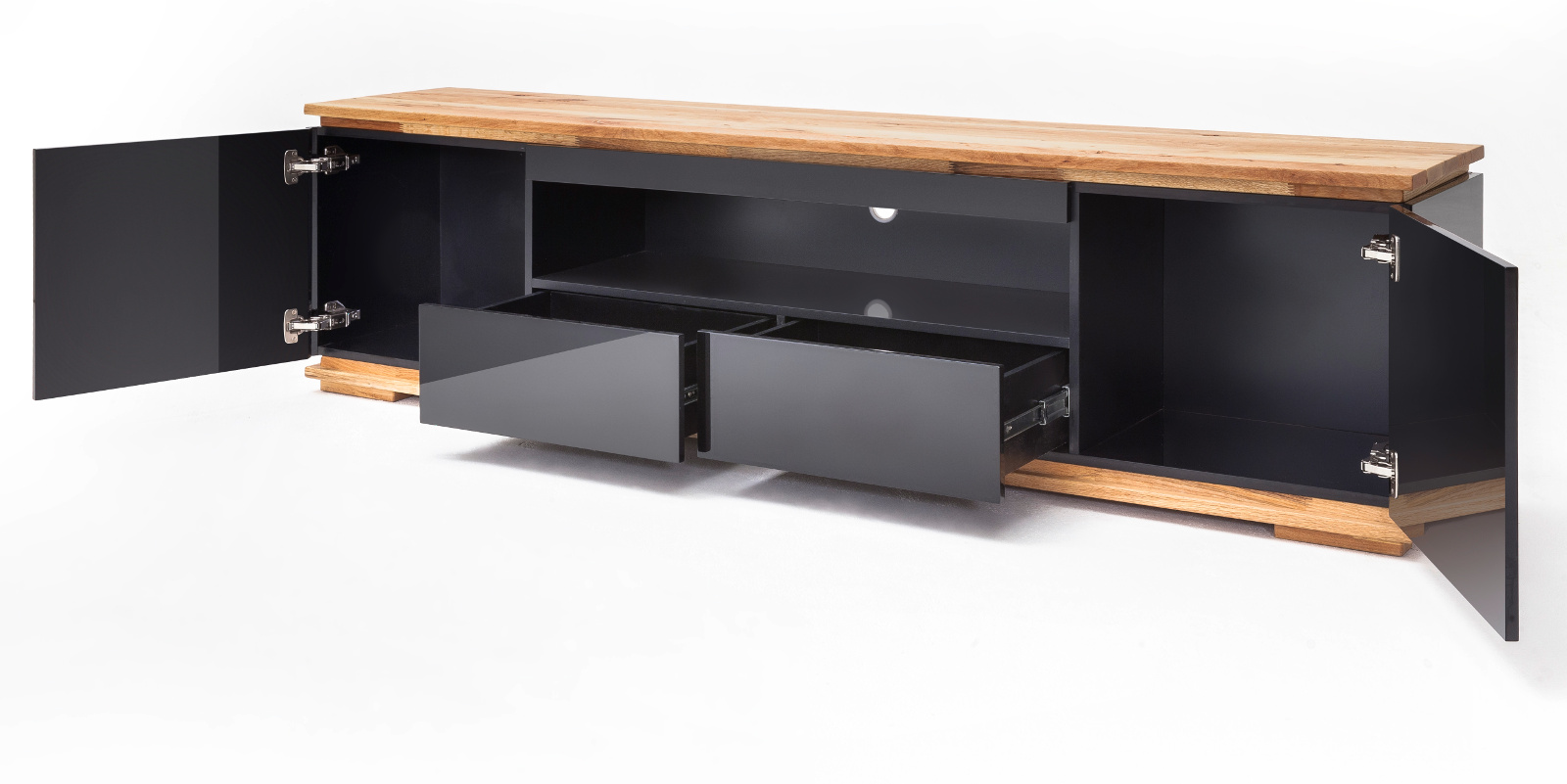 Tv Lowboard Chiaro Schwarz Hochglanz Eiche Massiv
