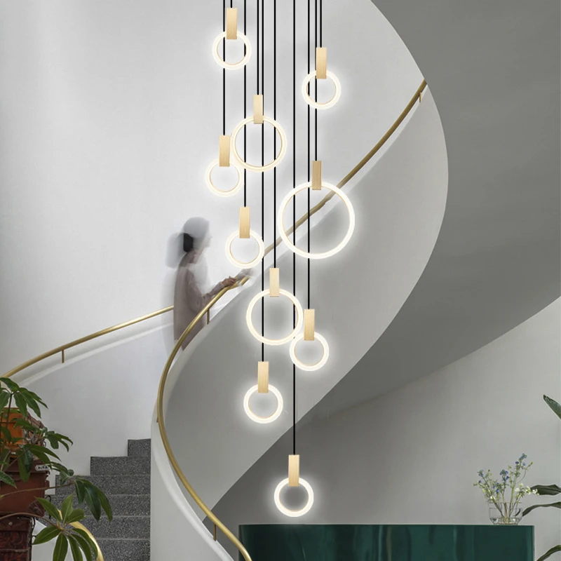 Moderne Kronleuchter Duplex Gebaude Villa Treppenhaus Beleuchtung Acryl Ringe Suspension Nordic Lampe Lange Gold Rund Kronleuchter Kronleuchter Aliexpress