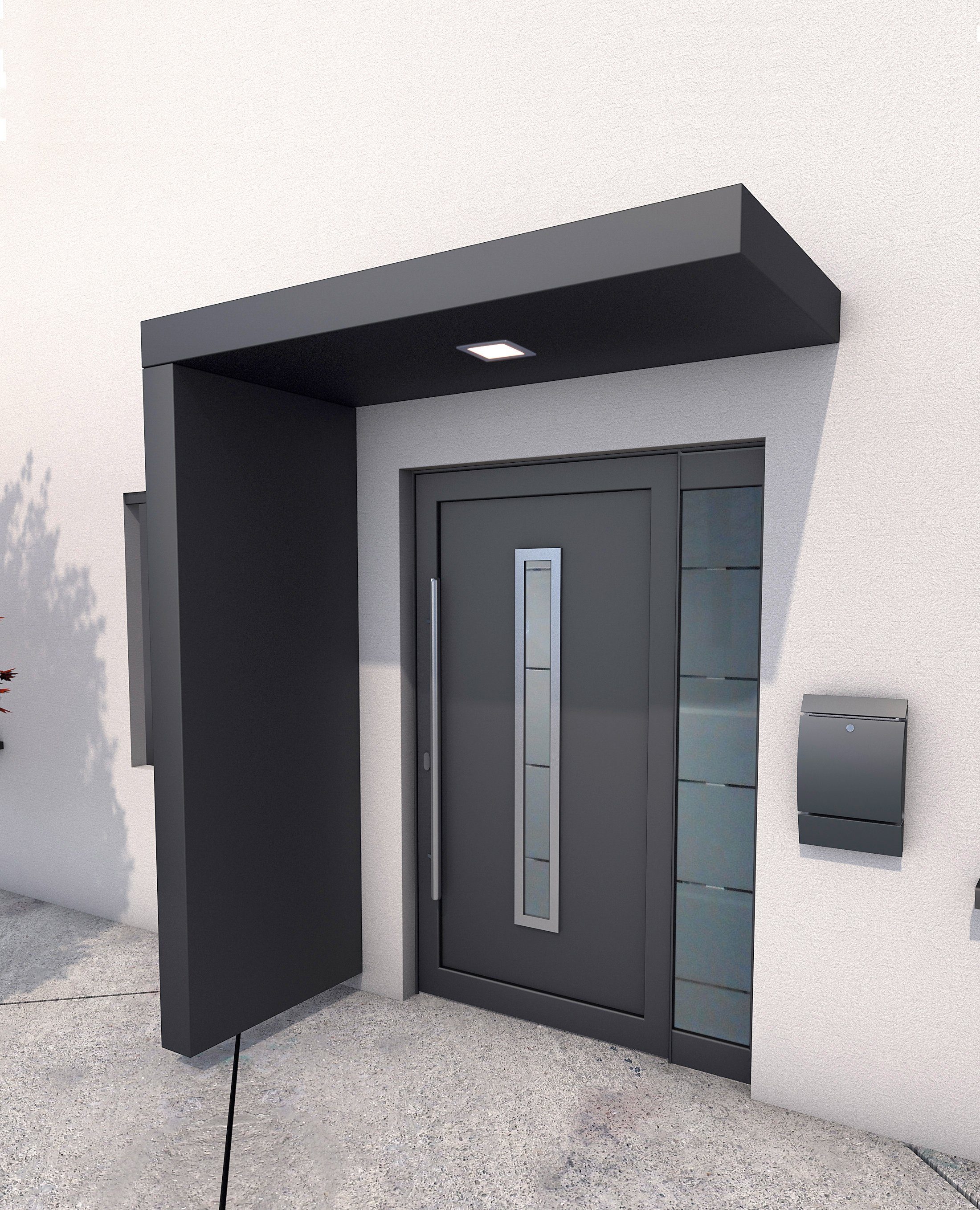 Hausturuberdachung Mit Seitenteil Und Integriertem Briefkasten Ulm Vohringen Hausturuberdachung Hausturvordach Moderne Haustur