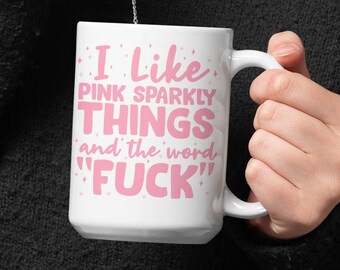 Amazon Com Teewish I Like Sparkly Things And The Word Fuck Ceramic Coffee Mug Beer Stein Water Bottle Color Changing Mug One Size 15 Oz White Mug White Home Kitchen