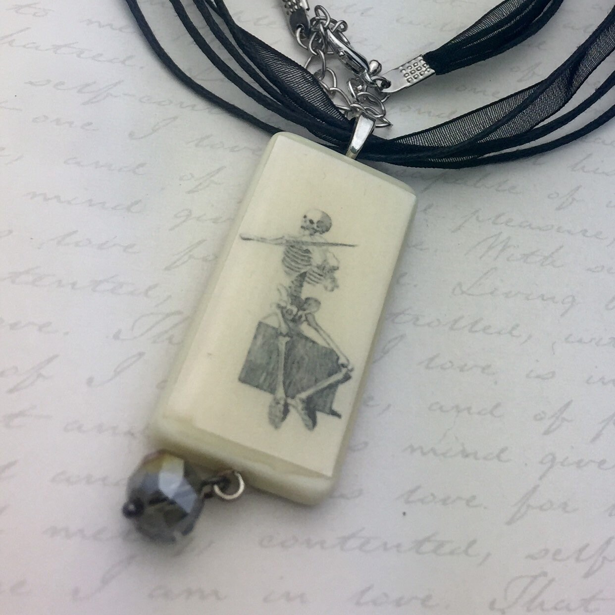 Vintage Skeleton Playing Violin Image Domino Pendant