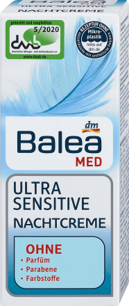 Balea ultra sensitive nachtcreme. Balea Ultra Sensitive Q10 AntiFaltenNachtcreme Die Balea Med Ultra Sensitive Q10 AntiFaltenNachtcreme verwöhnt die Haut Eine regelmäßige Anwendung trägt nachweisbar dazu bei, die Faltentiefe zu reduzieren und die Hautelastizität zu verbessern – für eine glatte Haut. Balea Med Ultra Sensitive Nachtcreme Ночной крем для очень чувствительной кожи лица Balea Med 50ml 59,95 Balea Morgenfrische escreme Hauterstrahlend Освежающий дневной крем для сияния кожи Balea 50ml 74,95. Balea Med Nachtcreme Ultra Sensitive, 1 x 50 ml mit Allantoin, Panthenol und Vitamin E Balea Med Ultra Sensitive, getestet und empfohlen vom Deutschen Allergie und Asthmabund Die Balea Med Ultra Sensitive Nachtcreme ist optimal abgestimmt auf gestresste und irritierte Haut.