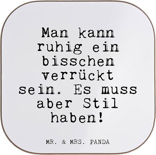 Mr Mrs Panda Quadratische Untersetzer Mit Spruch Man Kann Ruhig Ein Bisschen Verruckt Sein Es Muss Aber Stil Haben 100 Handmade Aus Hartfaser Untersetzer Holz Glas Glaser Glasuntersetzer Fruhstuck
