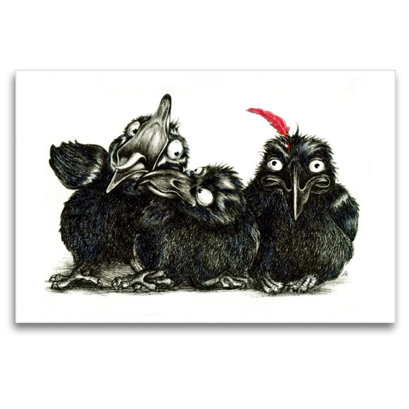 Premium Textil Leinwand 1 Cm X 80 Cm Quer Drei Lustige Raben 97 99