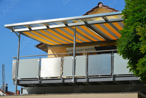 Edelstahl Balkon Mit Edelstahlrahmen Glasdach Und Markise Kaufen Sie Dieses Foto Und Finden Sie Ahnliche Bilder Auf Adobe Stock Adobe Stock
