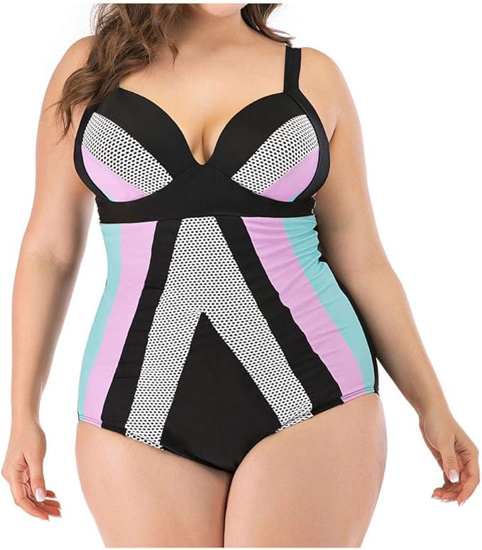 Zezkt Damen Einteilige Badeanzug Frauen Monokini Streifen Druck Bikini Grosse Grossen Bademode Schwimmanzug Strandmode Amazon De Bekleidung
