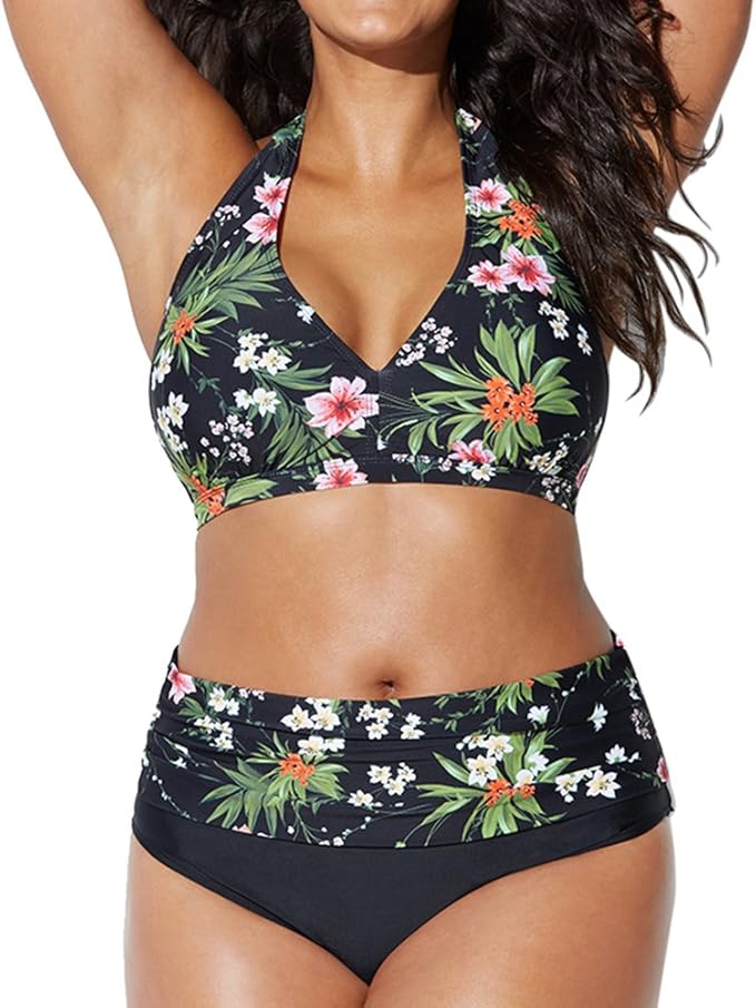 La Vestmon Sexy Bikini Set Damen Grosse Grossen Push Up Bademode Blumenmuster High Waist Frauen Badeanzug Eu 44 46 Amazon De Bekleidung