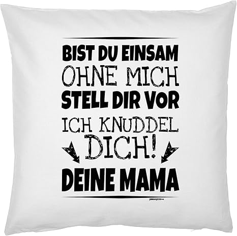Tini Shirts Mama Kuschel Kissen Mutter Spruche Kissen Geschenk Deko Kissen Bist Du Einsam Ohne Mich Deine Mama Kissen Ohne Fullung Farbe Weiss Amazon De Kuche Haushalt