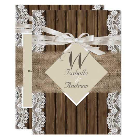 Rustikale Hochzeit Beige Weisser Spitzenholz Burlap Einladung Zazzle De