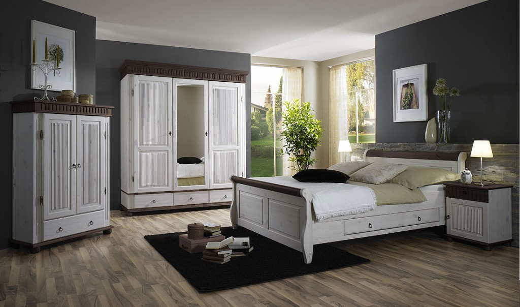 Schlafzimmer Komplett Kleiderschrank Bett Nako Kiefer Massiv Weiss Kolonial Lanatura