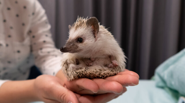Weisse Albino Igel Tier Hangen Im Menschlichen Pinch Lizenzfreie Fotos Bilder Und Stock Fotografie Image