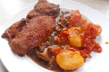 Entenkeule Niedrigtemperatur Mit Pfifferlings Rahm Kartoffeln Von Salomee Chefkoch
