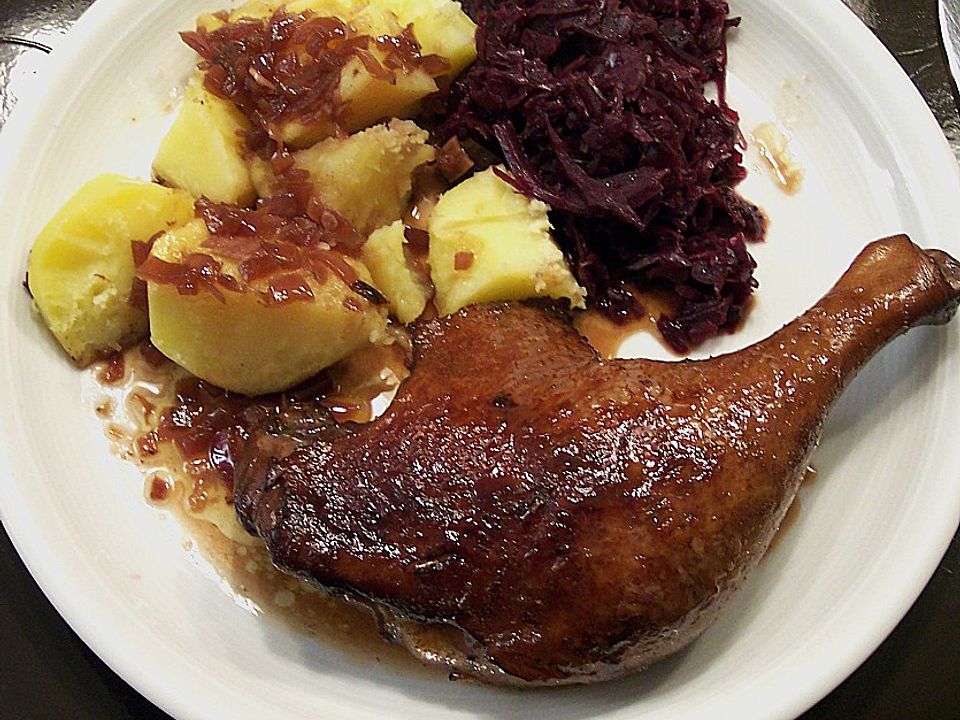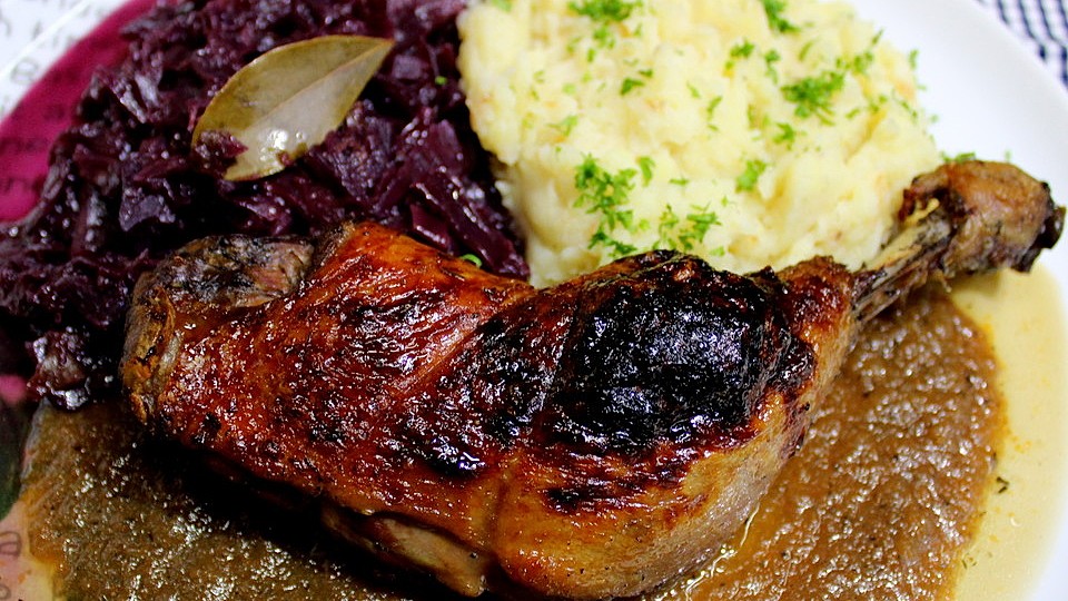 Entenkeulen Zu Rotkohl Und Kroketten Rezept Lecker