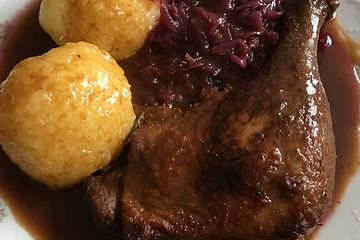 Entenkeule Mit Selbstgemachtem Rotkohl Und Selbstgemachten Kartoffelklossen Bubbles And Beef