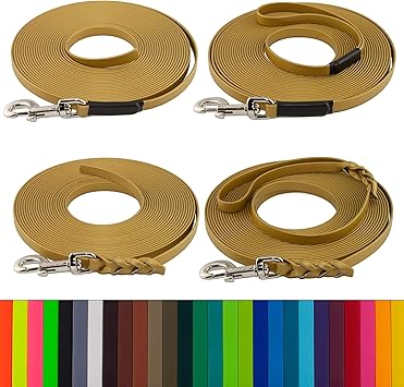 Lennie Biothane Schleppleine 12m Gold 16mm Fur Grosse Hunde Genaht Geflochten Handschlaufe Karabiner Wahlbar Amazon De Haustier