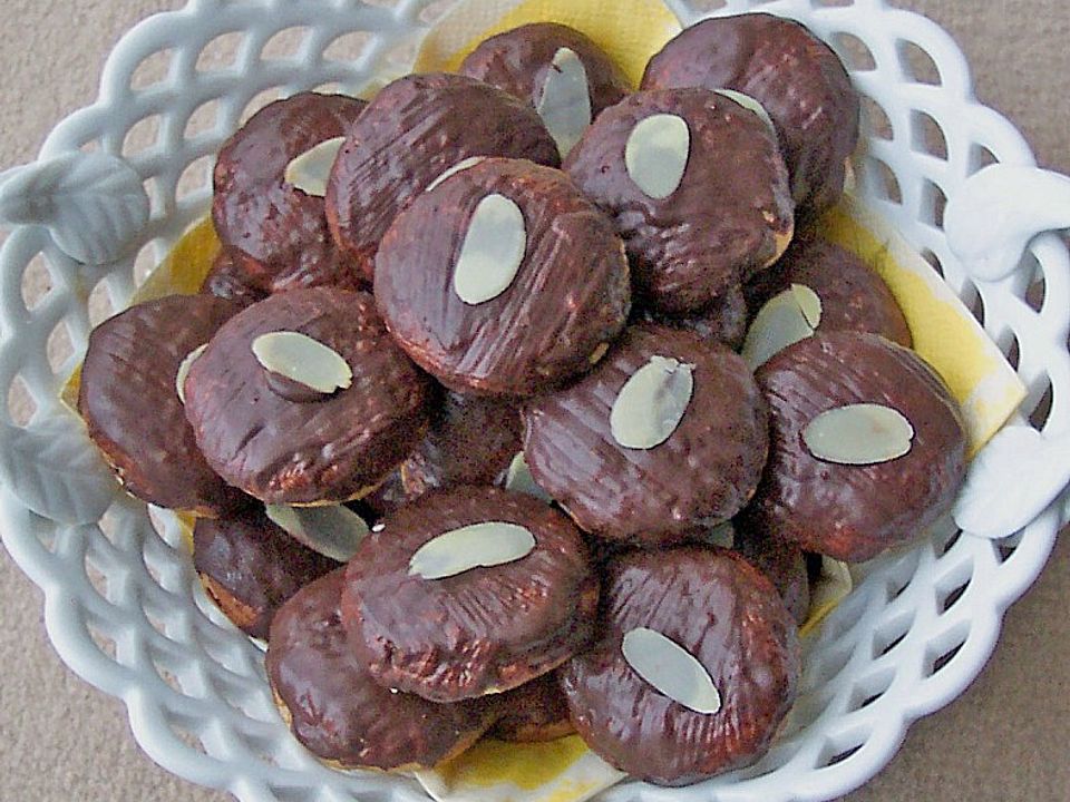 In 4 Monaten ist zwar erst/schon wieder Weihnachten, aber bei dem momentanen Wetter, ist mir gerade nachfolgendes Rezept in dem Sinn gekommen Zutaten (40 Stück) 6 Eier;. LebkuchenZutaten zu einem Teig verarbeiten und auf die Oblaten streichen, am Rand etwas flacher und in der Mitte etwas höher formen, einfach schöne Lebkuchen von mittlerer Größe Diese bei 180 Grad im Ofen etwa 30–35 Minuten backen Nach dem Erkalten mit Schokoglasur bestreichen und mit einer ganzen oder halben geschälten Mandel garnieren. Rufen Sie uns an / 3066 Wir sind täglich Mo Fr von 0800 10 und 1300 1700 Uhr für Sie da Wir freuen uns auf Ihren Anruf!.