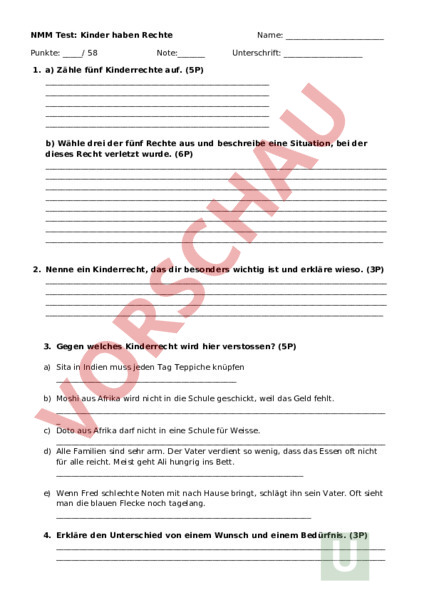 Arbeitsblatt Kinderrechte Lebenskunde Anderes Thema