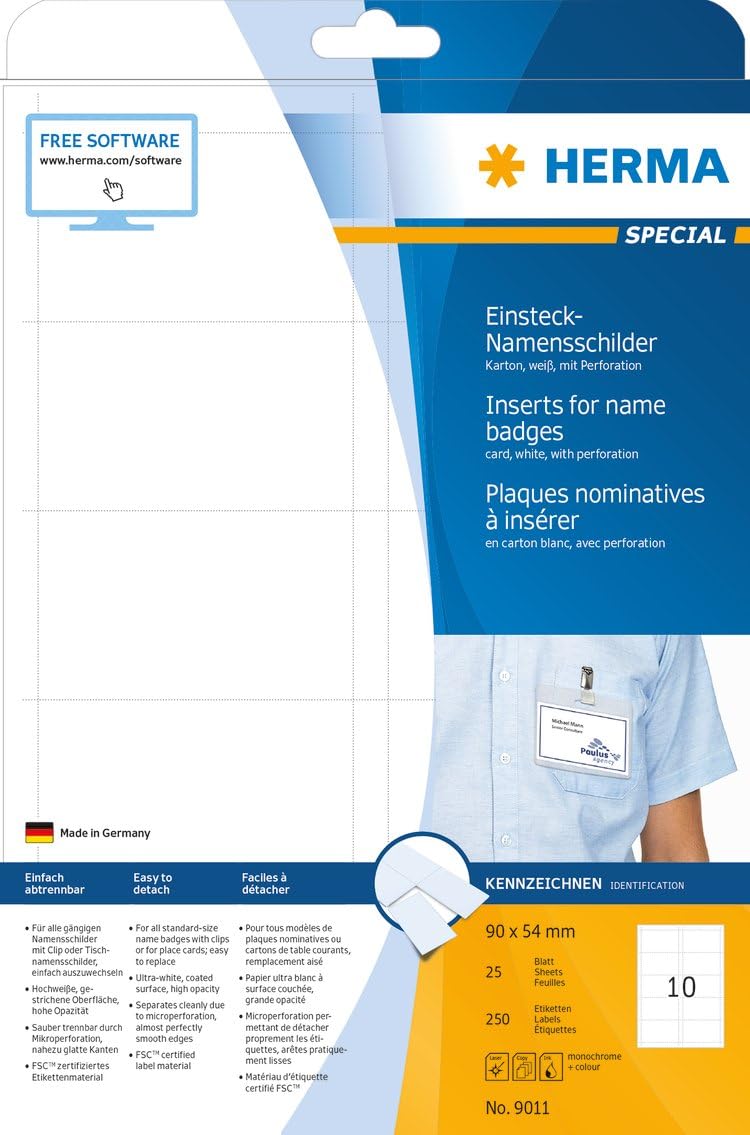 Herma 9011 Namensschilder Fur Kleidung Din 90 X 54 Mm 25 Blatt Karton Perforiert Bedruckbar Nicht Klebende Einsteckkarten 250 Einsteckschilder Weiss Amazon De Burobedarf Schreibwaren