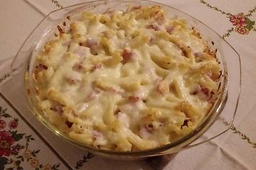 Nudeln In Schinken Sahne Sosse Mit Dreierlei Kase Uberbacken Von Backeninwacken Chefkoch